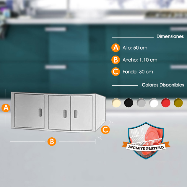 Gabinete No. 3 Platero Puerta Vidrio Lujo